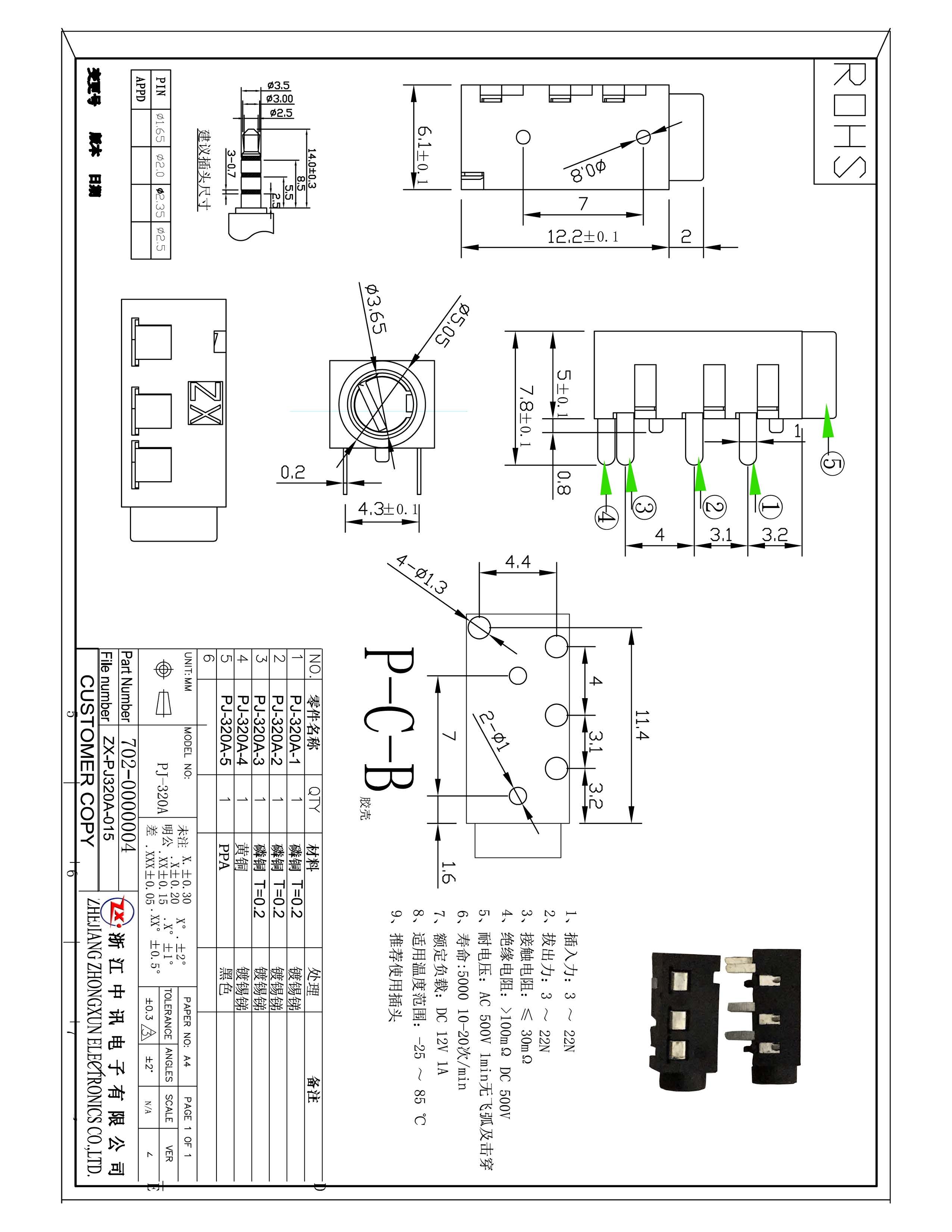 PJ-320A 4P PPA φ3.5mm 黑色